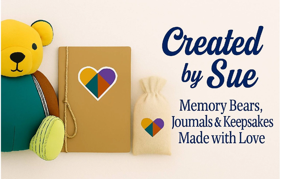 I'm Sue - maker, storyteller and comfort crafter. Whether I am transforming a loved ones clothing into a huggable bear or designing a keepsake journal etc, everything I make is designed to hold meaning.