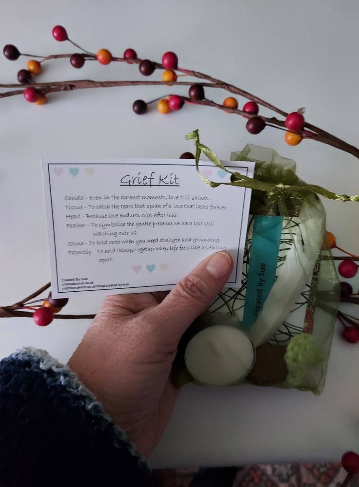 Grief Kit: Candle, Tissue, Heart, Feather, Stone, Paperclip