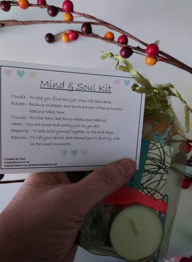 Mind & Soul Kit: Candle, Plaster, Tissue, Heart, Paperclip, Balloon